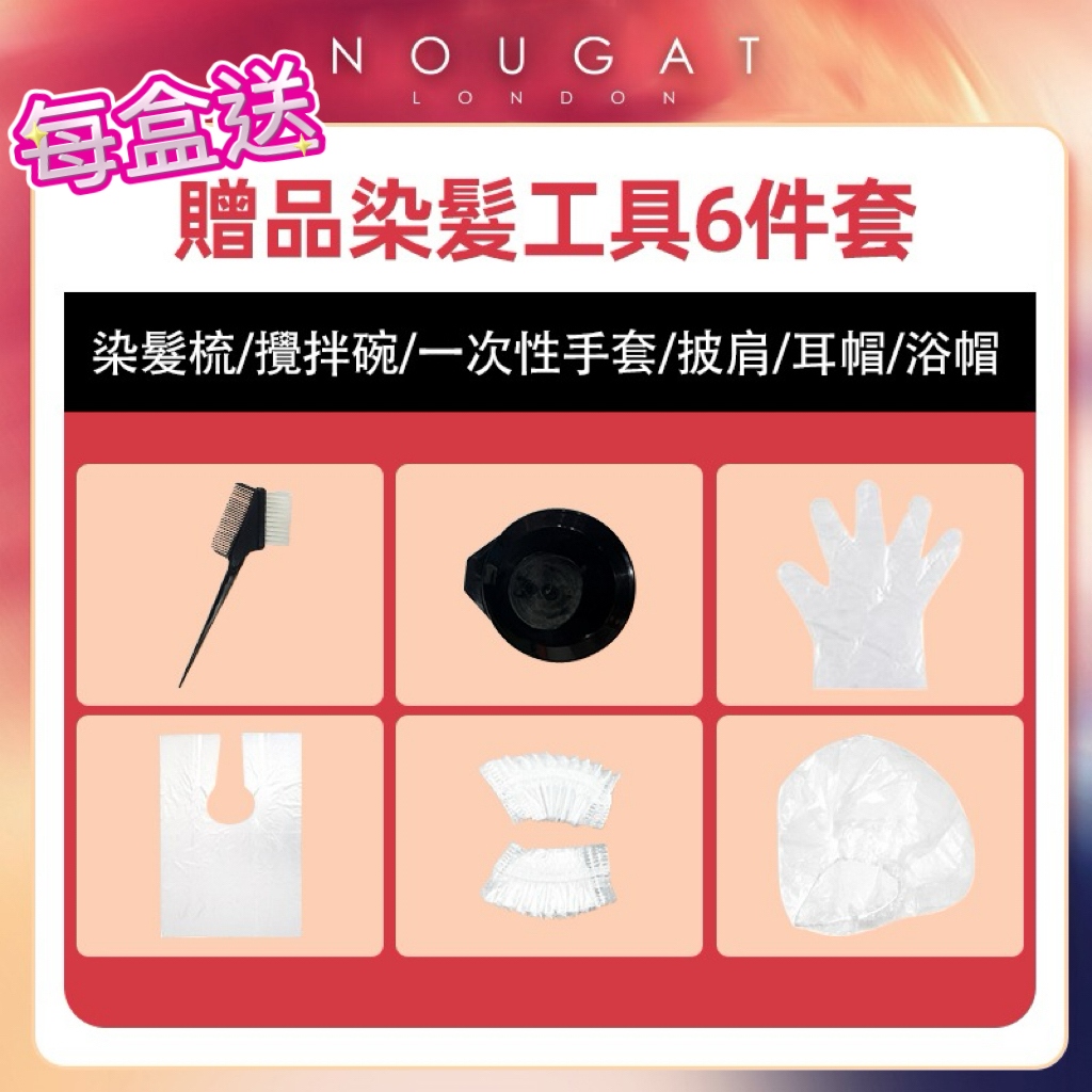 ⭕️每盒附送專業染髮工具(一件六套,包括:染髮梳、攪拌碗、披肩、耳套、手套、浴帽)