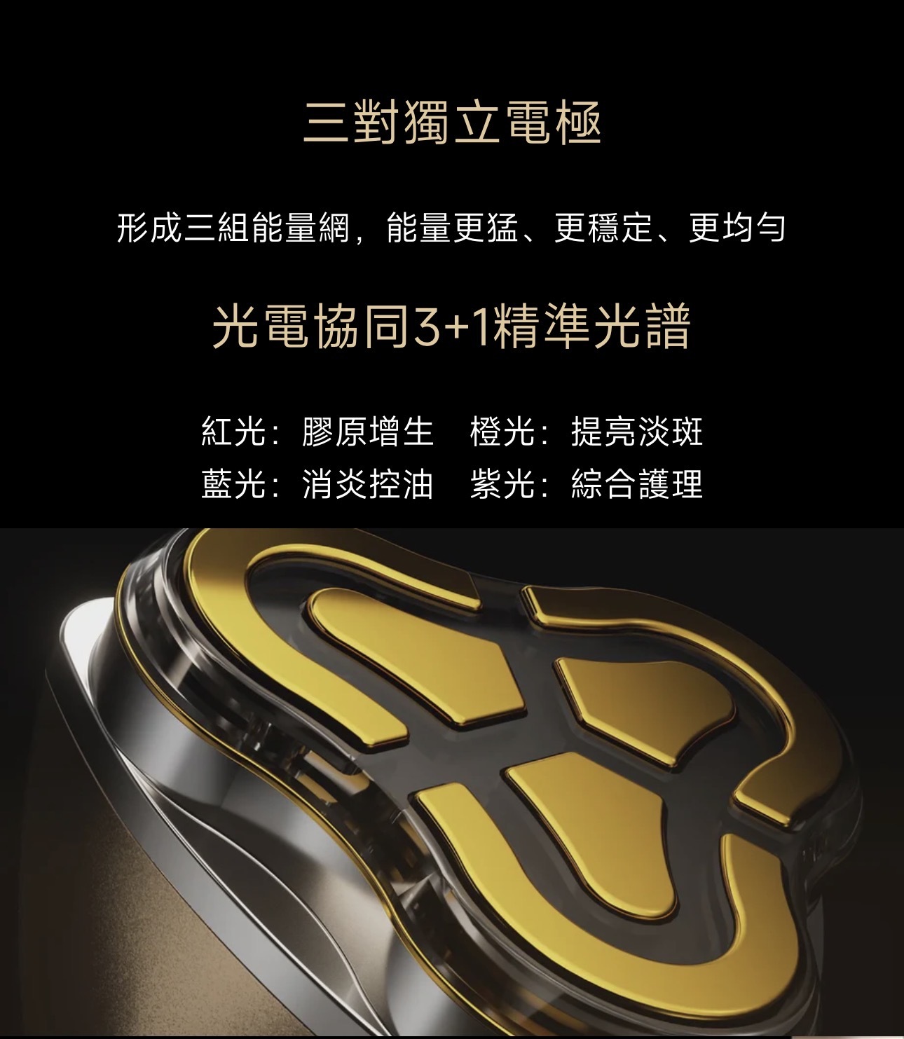 LED全開 : 使用紅、橙、藍3種LED,適合有多種肌膚煩惱的人士。